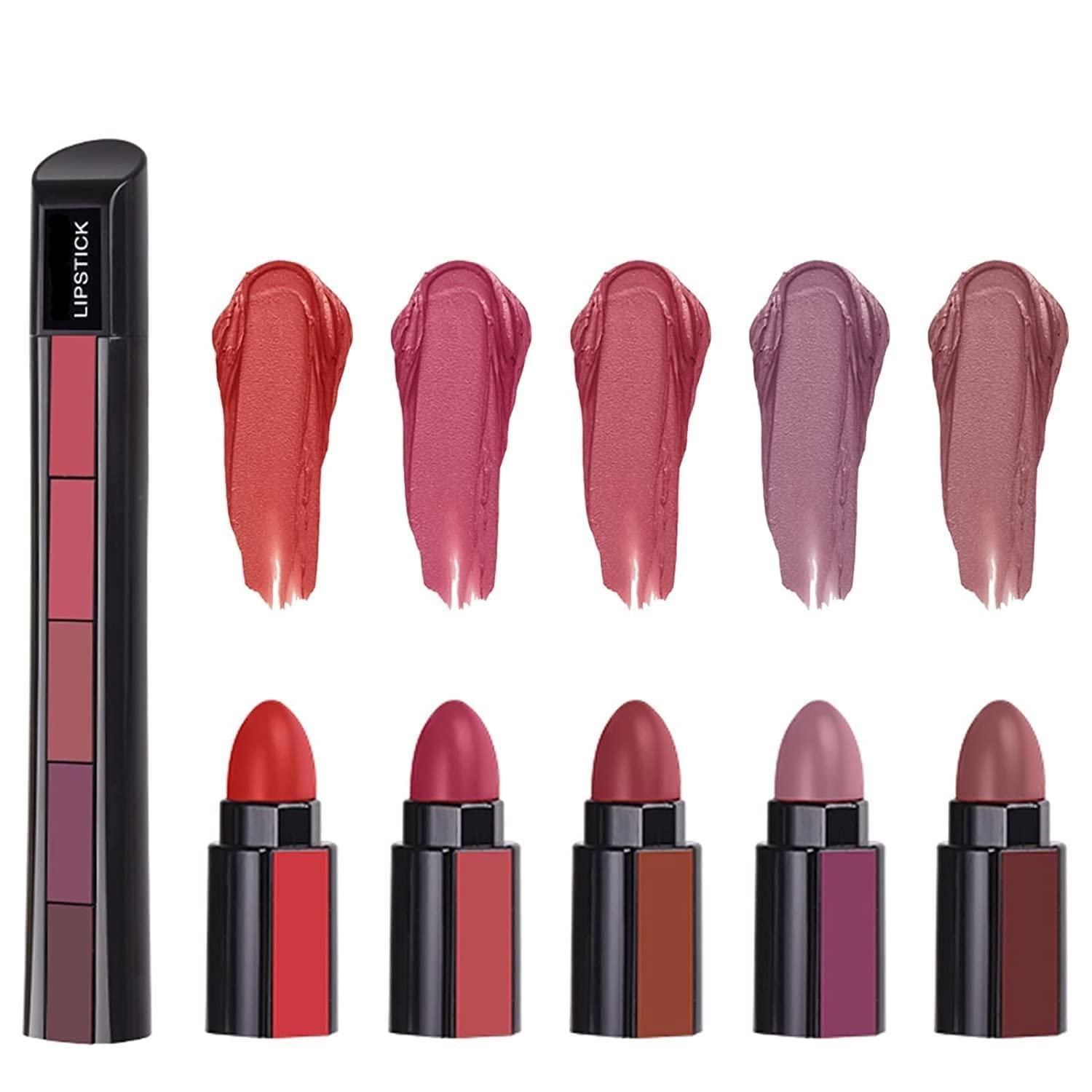 5 in 1 Lipsticks Combo Set, Red & Nude Edition Colors Sensational Fabulous Matte Finish Shades, 7.5g x2pcs