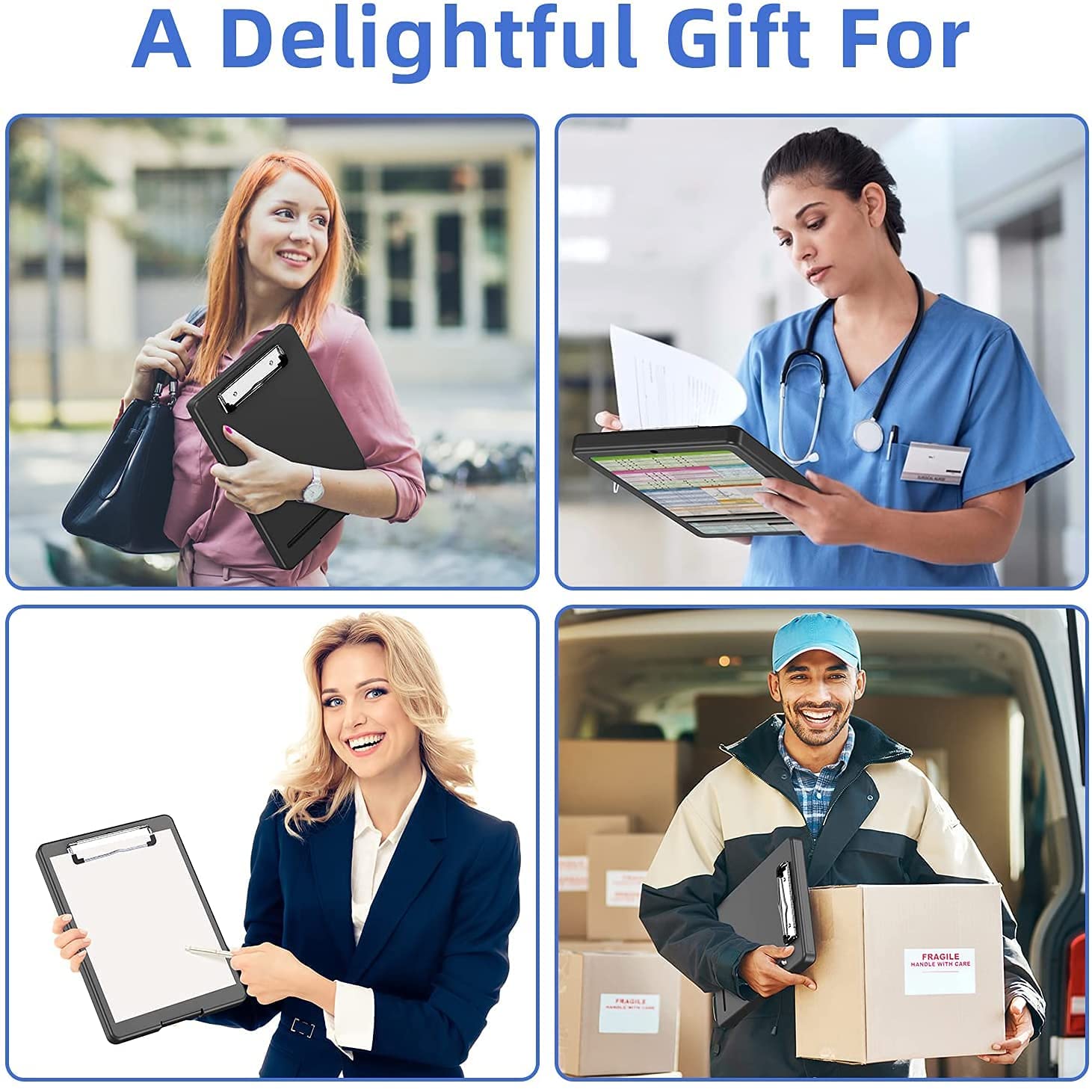 Strong but ligrtweight : Easy to carryThis Lightweight plastic clipboard with storage only weighs 1.09 pounds which can be kept in backpacks, large purses, briefcases and used wherever you go.