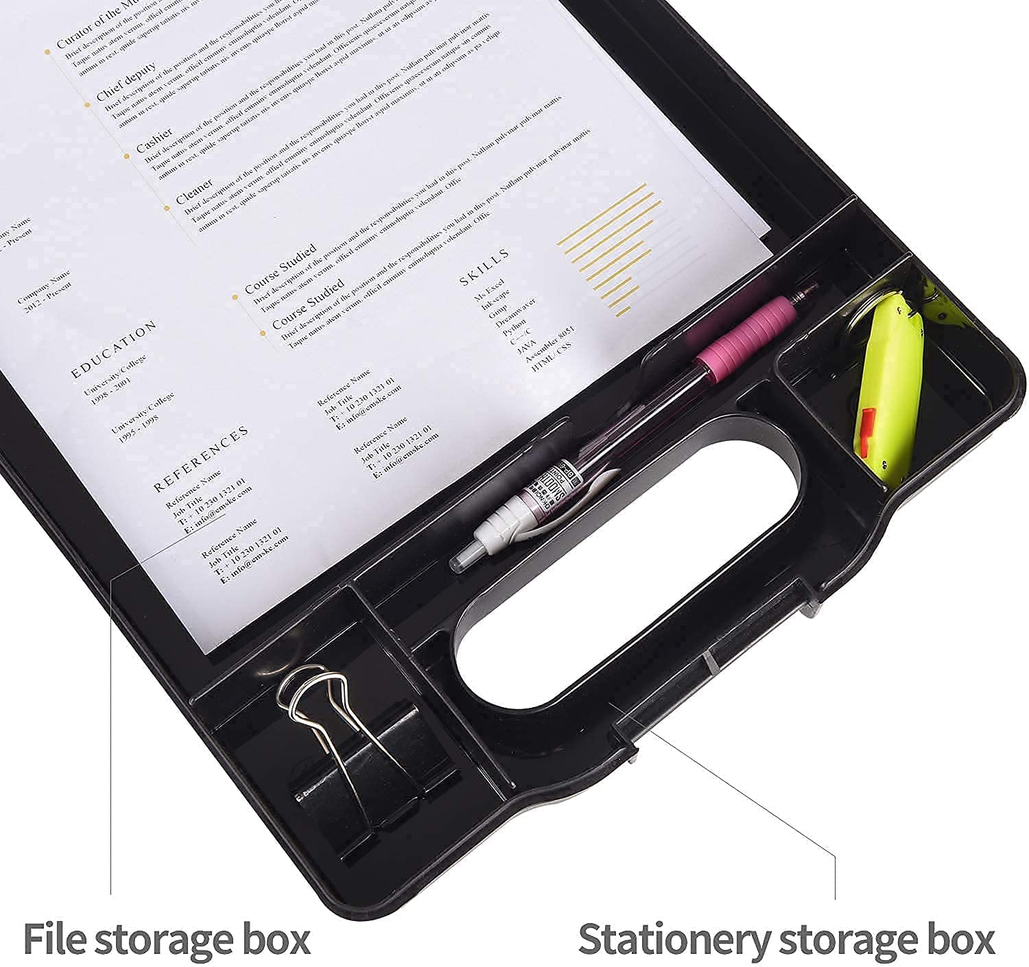 Clipboard with Storage Plastic Storage Clipboard Form Holder Binder with High Capacity Clip Posse Box for Office Business Professionals Stationer