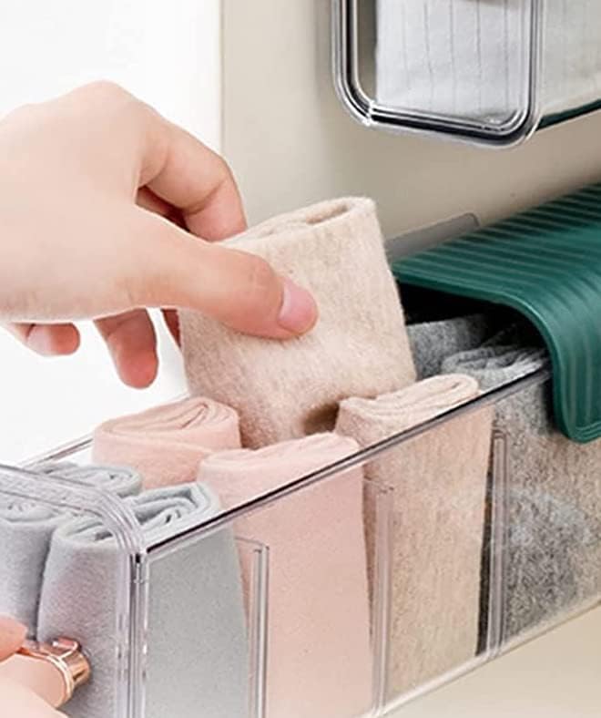 Wall Mounted Socks Storage Box 6 Cell New Clear Transparent Storage Box Multi Functional Plastic Storage Rack for Clothes, Socks Ties Data Cable Spices Grid Closet for Home Wardrobe