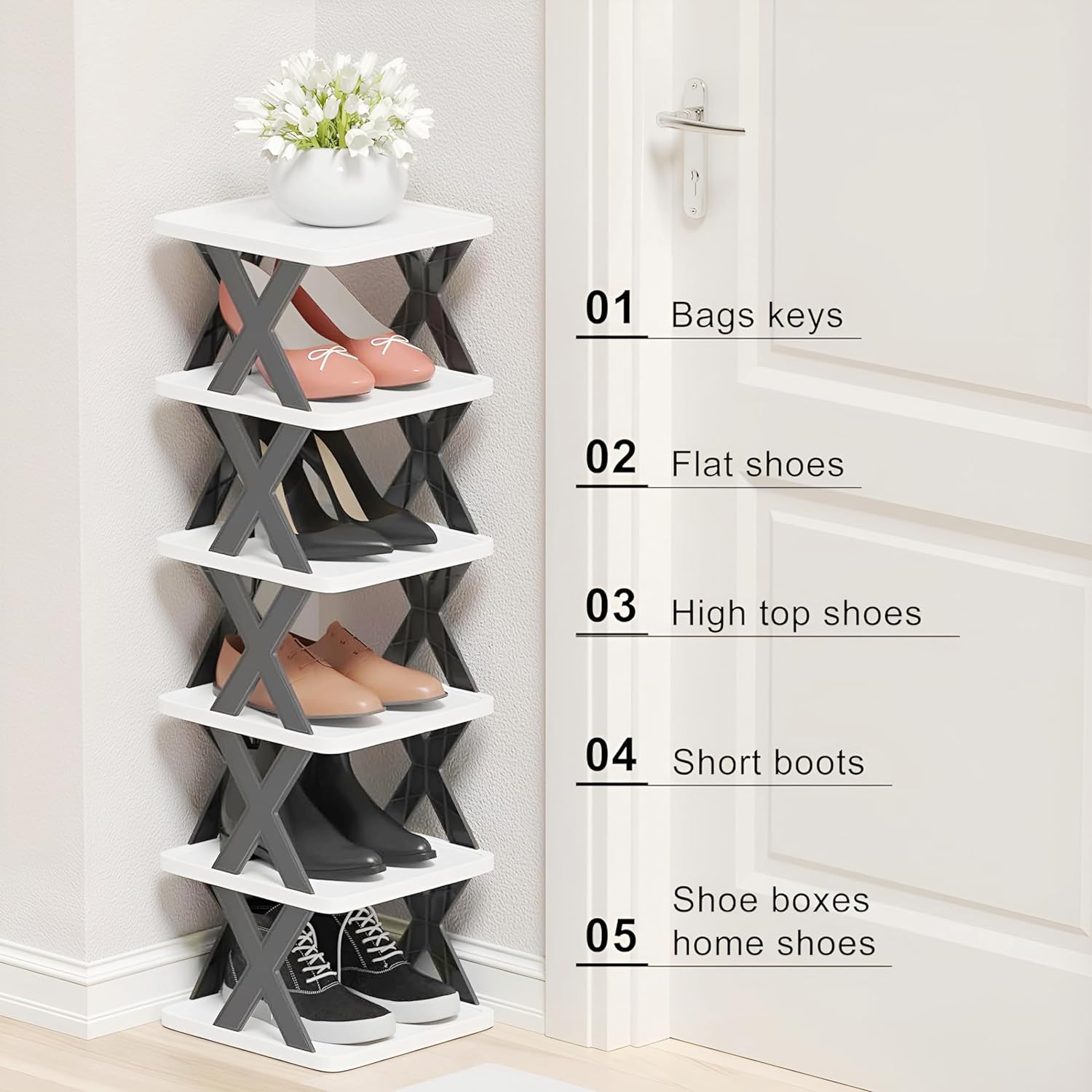 Multi Purpose Stackable Shoe Rack for Home, Stylish Shoe Storage Organizer for Entryway and Bedroom - Easy Assembly Space Saver Stand for Footwear (6 Layer)