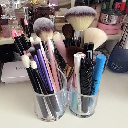 Keeps all your cosmetics neatly organized in a beautiful display, and at your fingertips. The 3 cylindrical compartments are connected at the base.