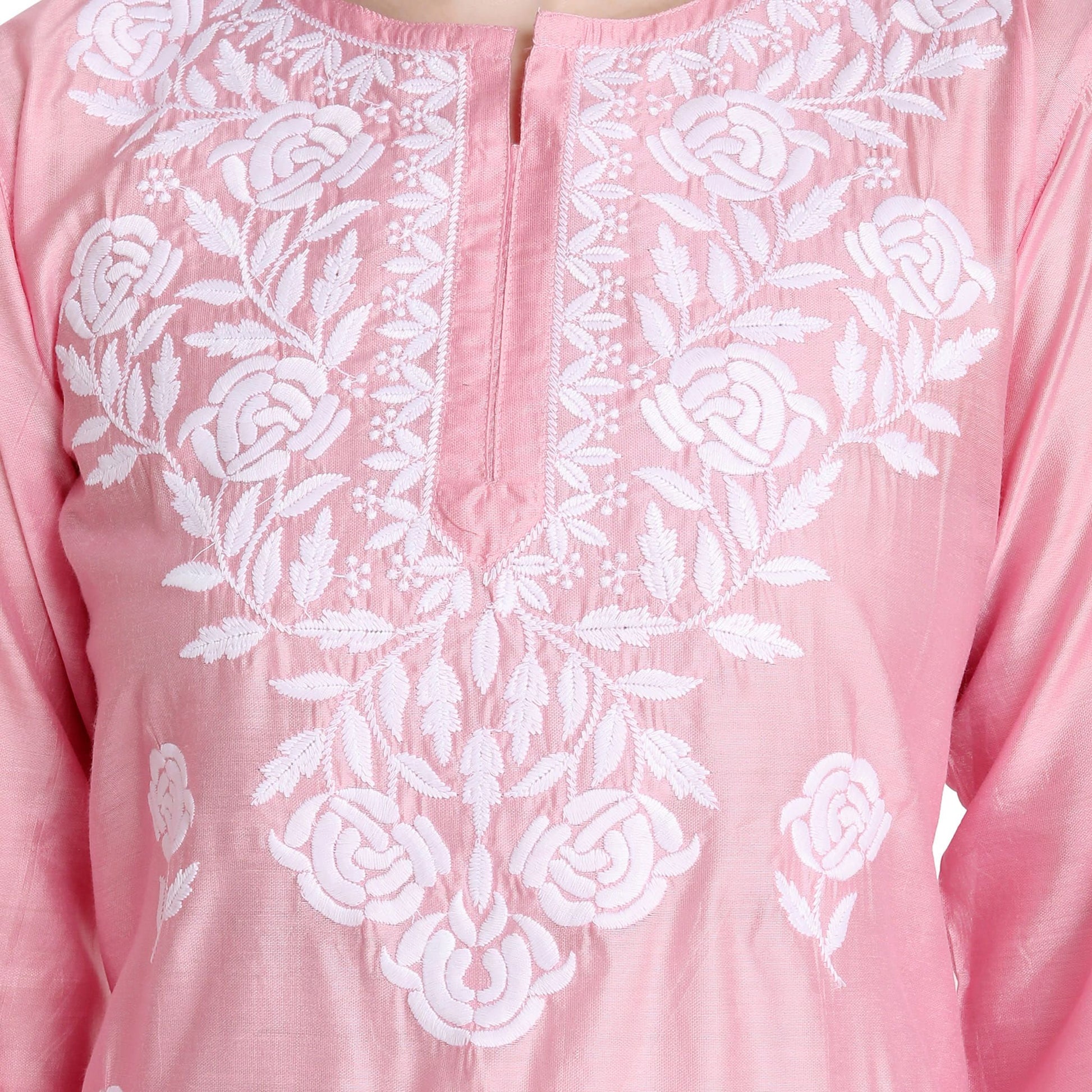 Product Name: Women Chikankari Chanderi Silk Straght Kurti
